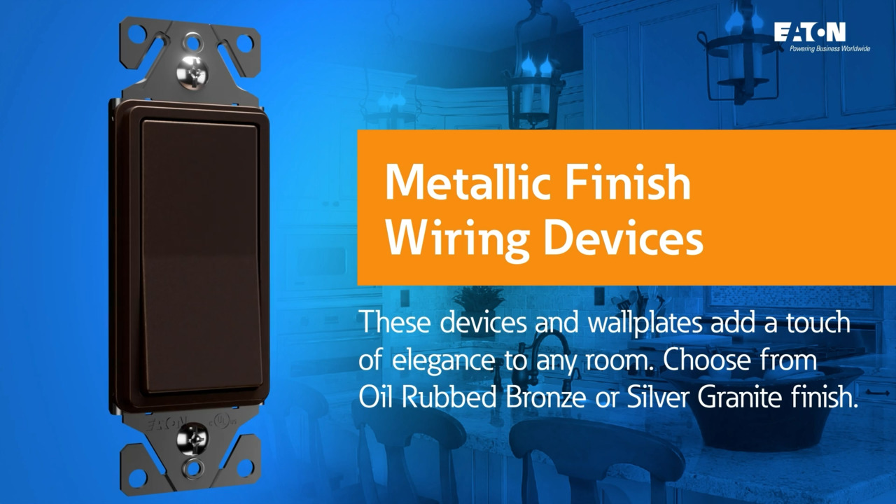 Add a refined touch with Eaton’s metallic finish wiring devices.